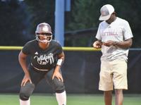 Benjamin Russell's Ryann Ruffin celebrates after a single in Game 1 in the area tournament championship.
