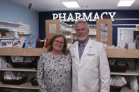 Anne and Jim Clayton man the till at Jim's Pharmacy's new Highway 49 location.