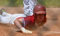 Klark James slides into home during Game 3 of Horseshoe Bend's playoff series with St. Luke's. April 22, 2023.
