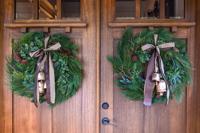 Homes Featured Christmas at the Lake Kenneth S Boone Dec 23, 2023 Wreaths with brown velvet ribbon and antiqued bells adorn the front doors Buy Now