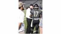 Sports Featured Wetumpka rallies in fourth quarter to beat Bryant 26-24 May 17, 2019 Wetumpka coach Tim Perry talks to quarterback Brandon Bowman (17) during Friday night’s spring game at Troy’s Veterans Stadium.