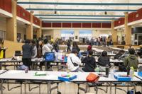 Cliff Williams / TPI The cafeteria at Wetumpka High School was turned into a pit area Saturday for a VEX Robotics IQ competition. The area all…