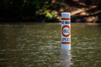 News LMRA Christopher Scott Habermann Nov 23, 2023 No wake safety buoy on lake alerting boaters to idle speed restriction. Nautical warning caution float on freshwater reservoir. Buy Now