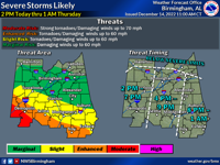 News Featured UPDATE: Severe weather threat shifts to Saturday morning Staff Report Mar 24, 2023 The National Weather Service (NWS) has issued a new threat level for the Tallapoosa and Coosa County area.