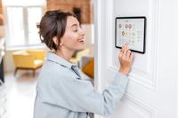 Woman controlling home with a digital touch screen Apr 13, 2022 Control your home security with a digital touch screen panel from inside the home. Buy Now