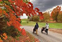 Two golfers pushing their golf carts down a path on a beautiful cool autumn day in Canada jimcumming88 - stock.adobe.com Nov 23, 2020 Buy Now