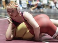 Julianna Eldridge (120 pounds) pins Alexa Watson from Russell County in 2:58 in the first round of the South Sectionals. Eldridge, a two-time state champion, placed first to qualify for the state tournament in Huntsville.