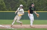 Edgewood Academy's Landon Smith advances to third base on an error from Hooper Academy.
