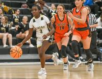 Samuel Higgs / TPI Dadeville's Lyri Cooper dribbles down the court after evading a few Glenwood defenders.