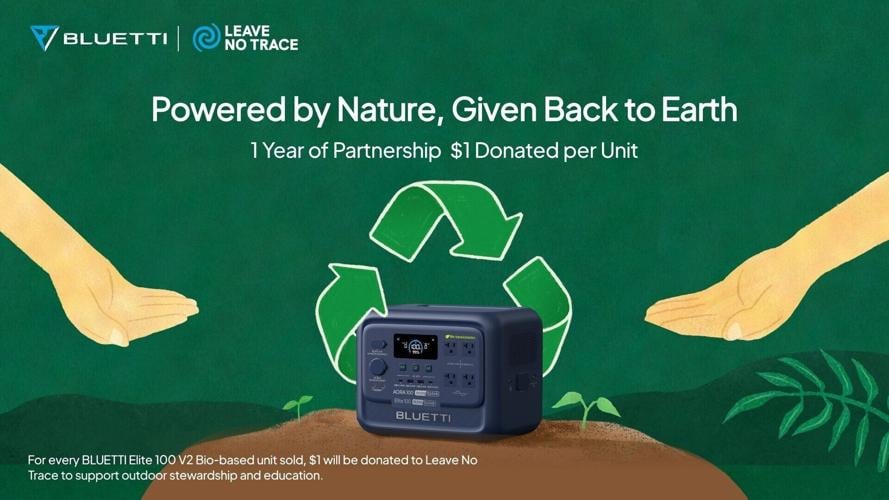 LOS ANGELES, April 2, 2026 /PRNewswire/ -- This Earth Month, clean energy leader BLUETTI renewed its strategic partnership with Leave No Trace, the international 501(c)(3) authority on outdoor ethics. Together, they are launching the Bio-Based Elite 100 V2 Giveback—a landmark initiative that converts product innovation into environmental stewardship by pledging $1 from every unit sold to fund outdoor education and nature preservation.