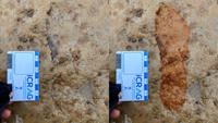 One of the footprints found on the beach in Scotland. (University of Aberdeen via SWNS)