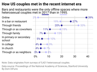 Spokeo visualized historical data from Stanford University researchers to illustrate the shifts in how couples have met and fallen in love over the years.