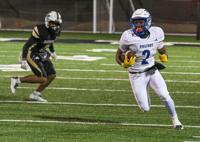 Samuel Higgs / TPI Reeltown Alijah Woods (16) looks for open space whiole Traylen Roberts (2) blocks.