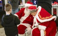 Cliff Williams / TPI Santa and Mrs. Claus visit with a child before the tree lighting at Veterans Park in Tallassee Friday night. The event also saw a holiday market with baked goods, sweets and other items.