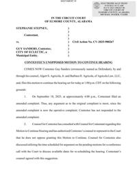 A hearing for arguments on a motion to dismiss Stephanie Stepney’s challenge that Guy Sanders didn’t meet the residency requirements for mayor in time was continued.