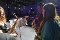 Cliff Williams / TPI Emily Scott Dillard Scott, third from left, plays the piccolo Thursday night. It’s a instrument she said she waited to play in college because band Dr. Robby Glasscock said no.