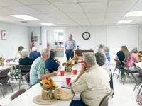 Sarah Chase / TPI Reeltown High School band director Eric Thompson addresses Kiwanis about fundraising efforts.