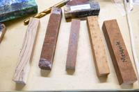 Cliff Williams / The Tribune The completed walnut pen is pictured on walnut blanks similar to what David Thornton started with in creating the pen in his Tallassee shop.