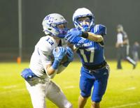 Cliff Williams / TPI Reeltown’s Reed Wood (17) breaks up a pass intended for Highland Home’s Branson May.