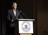 Cliff Williams / TPI Tyler Boddie of Vermont speaks about his father Dr. James Riley Boddie from the Tallassee High School Class of !968. Dr. Boddie was inducted into the Tallassee High School Alumni Association Hall of Pride Sunday.