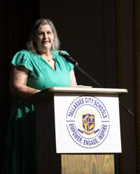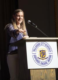 Cliff Williams / TPI Meg Young speaks about her father Dr. Jimmy Durden who was inducted in the Tallassee High School Alumni Association Hall of Pride Sunday.