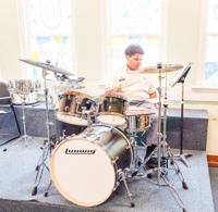 Submitted / TPI Freshman Blake Modeste tries out the new drum kit.