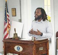 Sarah Chase / TPI Queen's Place CEO Brandon Morgan speaks to Kiwanis Club members about the organization's roots and upcoming gala.