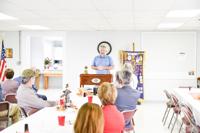 Sarah Chase / TPI Wreaths Across America Dadeville representative Jamie Adcock answers questions from Kiwanis Club memebers.