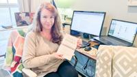 Submitted / TPI Teresa McKelvey takes a photo with her book at her writing desk.