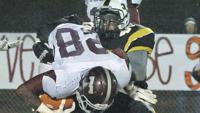 DHS Nick Johnson takes down Thomasville RB Tyler Hayes last week. The Tigers will be on the road at UMS Wright Friday.