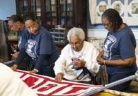 Cliff Williams / TPI Tonea Stewart, second from left, visited with the Thread My Needle Quilters as she begins a documentary project on the Wetumpka group. Stewart was in A Time to Kill, Mississippi Burning and The Rosa Park Story.