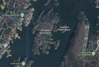 GoggleMaps / TPI An aerial view shows Chimney Rock Island connected to The Ridge by the “Bridge to Nowhere.” The Elmore County Commission approved a Russell Lands plat with 18 lots in the southern part of the island. Acapulco Rock Island is where many boaters stop and some take a jump into Lake Martin from the rock face.