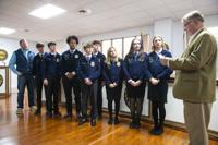Cliff Williams / TPI Wetumpka council member Joe Brown, right, reads portions of a proclamation for National FFA week as members of the Wetumpka High School FFA listen.