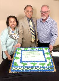 Submitted / TPI Dr. Bipin Kumar, center, poses with his wife Manjula, left, and Ivy Creek Healthcare CEO Mike Bruce at a retirement celebratioon for Kumar. He has been an interal medicine doctor at Elmore Community Hospital since 1978.