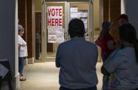 Cliff Williams / TPI Voters wait for the ballot tally to be posted on the window for the City of Wetumpka Municipal Election Runoff for City Council District 1.