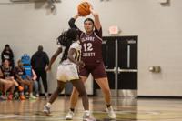 Ana Sofia Meyer / TPI Elmore County forward Raevyn Barris looks for an open pass against Dadeville.