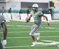 Lizi Arbogast / TPI Holtville's Jacob Burgess (10) calls his own number during Friday night's game against Shelby County.