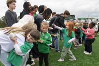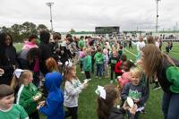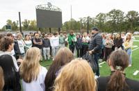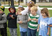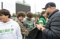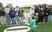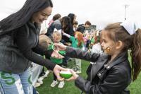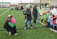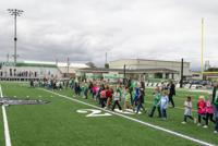 Cliff Williams / TPI Members of the Holtville High School Class of 2026 greeted kindergartners from Holtville Elementary School at the 50 yard line for the Holtville Legacy Event. Seniors presented the younger students with footballs. The young students presented bracelets to the seniors.