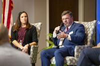 Cliff Williams / TPI Elmore County District Court Judge Ben Baxley, right, speaks about trying to connect litigants in his courtroom with jobs as ECTC director Emilie Johnson looks on.
