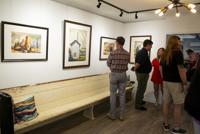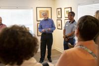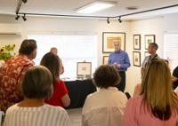 Cliff Williams / The Herald Guests look over the Shiney Moon exhibit at The Art Mill in Millbrook. The exhibit includes Moon’s "Moonlight on Pickle Hill” Moon started to paint after his daughter visited Millbrook’s Camp Grandview in the 1940s. He later was a member of the Dixie Art Colony.
