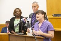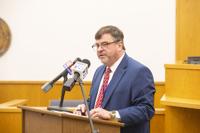 Cliff Williams / TPI Elmore County District Court Judge Ben Baxley, right, speaks about how the juvenile courts have been used to improve truancy in the county.