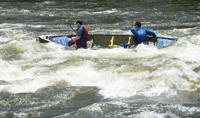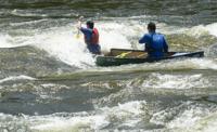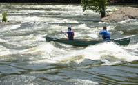 Cliff Williams / The Herald A canoe paddles through Moccasin Gap on the Coosa River. The unofficial Coosa River Whitewater Festival featured paddle boarders and kayakers in a friendly competition. It is the first time since the COVID-19 pandemic organizers have organized the event.