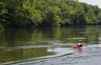 Cliff Williams / The Herald Recreational kayakers paddle through Moccasin Gap on the Coosa River. The unofficial Coosa River Whitewater Festival featured paddle boarders and kayakers in a friendly competition. It is the first time since the COVID-19 pandemic organizers have organized the event.