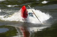 Cliff Williams / The Herald A kayaker rolls out of the first drop in Moccasin Gap on the Coosa River. The unofficial Coosa River Whitewater Festival featured paddle boarders and kayakers in a friendly competition. It is the first time since the COVID-19 pandemic organizers have organized the event.