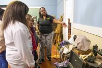 Cliff Williams / TPI Elmore County Black History Museum board member Yvonne Saxon shows fourth graders some of the tools used for making clothing. The display is one of many in the museum show life of Black residents decades ago in Elmore County.