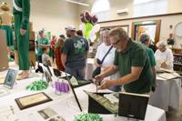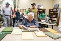 Cliff Williams / TPI Guests look over the book of graduates at a Holtville High School alumni tea Friday. The Class of 2025 is the 100th graduating class and will be the last class entered into the book. A new book for future graduates has been purchased.