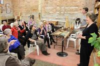 The Wetumpka Fine Arts Club visited the Rumbling Waters Arts Center Feb. 21. They were shown around the historic riverside building, which is the first-documented commercial building on the east side of the Coosa River. Above, owners Carole Jean Boyd and Dylan Goodson show club members some of their recent work and talk about the plans for the business once they complete renovations. Photo by David Goodwin