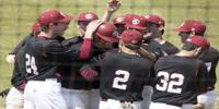 Stanhope Elmore’s Blaine Milam is congratulated by teammates after homering against Elmore County on the second day of the Barry Mask Baseball Invitational.
