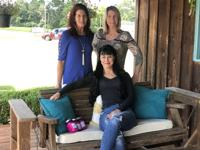Julie Bridgman, April Hensley and Heather DeLauder sit outside of Hensley Creek Candles. The Herald/Briana Wilson