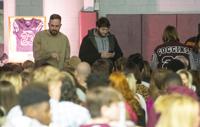 Cliff Williams / The Herald Members of the MOB watch at a vigil for their friend Masen Googins. The group had shirts specially printed to remember their friend.